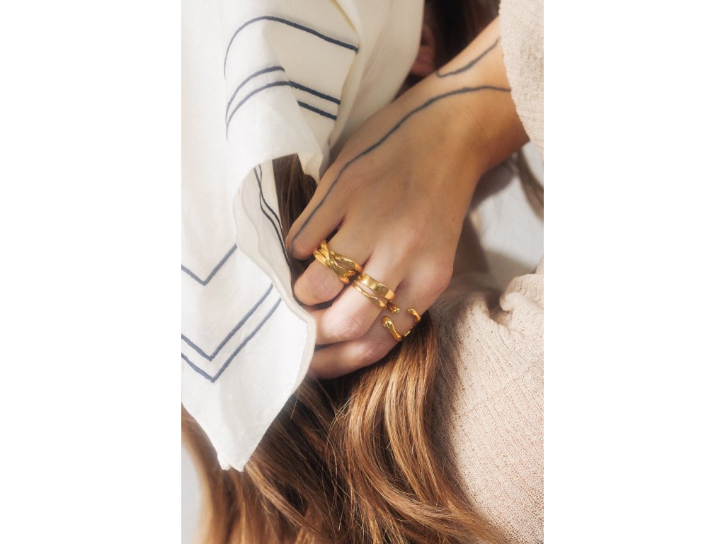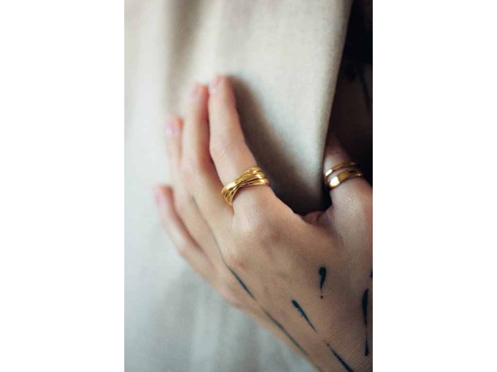 Prsteň je vyrobený z nehrdzavejúcej ocele, pozlátený 18k zlatom technológiou PVD, ktorá zaistí vysokú odolnosť a luxusný vzhľad šperku.