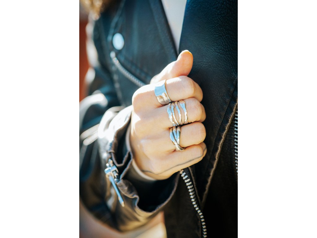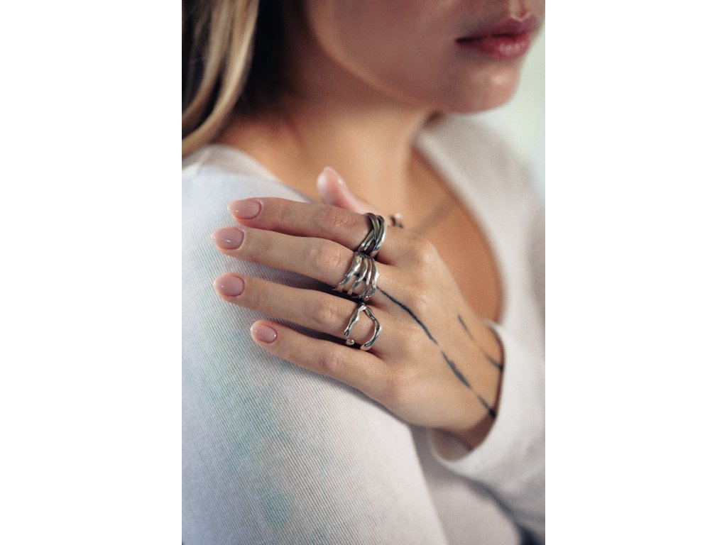 Lyria je výrazný prsteň s vrstveným dizajnom a nepravidelnými vlnami. Každý kus je tvarovaný s jemnými odchýlkami, čo znamená, že každý prsteň je originál s vlastnou štruktúrou a rytmom línií.