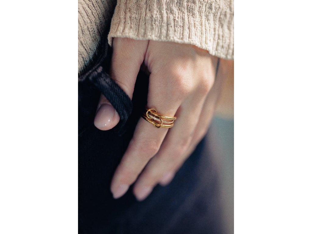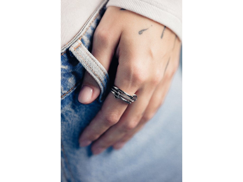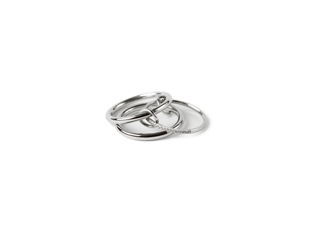 Trivenna sú tri obruče prepojené do jedného celku. Čisté línie dopĺňajú jemné kamienky - jednoduché ale nápadné.